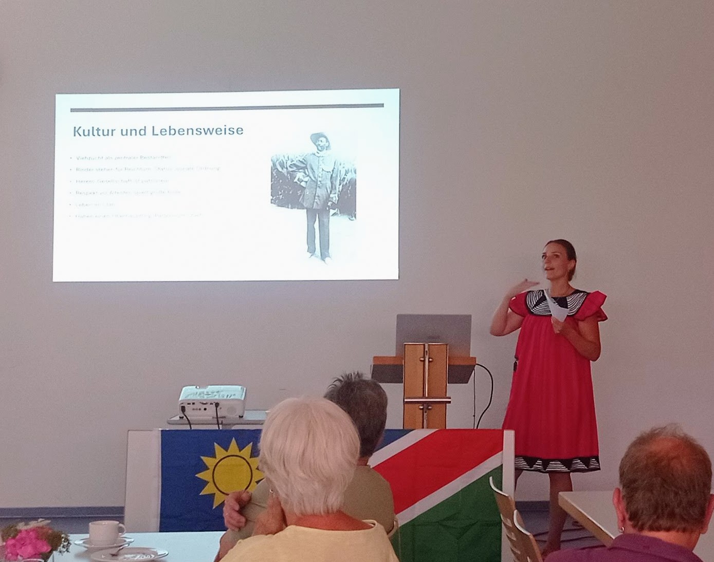 Neben dem obligatorischen Kaffee & Kuchen-Buffet gab es Vorträge von Oliver und Konrad Buch zu ihrer letzten Reise durch Namibia und den Besuchen in unseren Projekten. Zudem führte Valerie Buch die Reihe über die namibischen Volksstämme mit einer Präsentation über die Herreros fort.